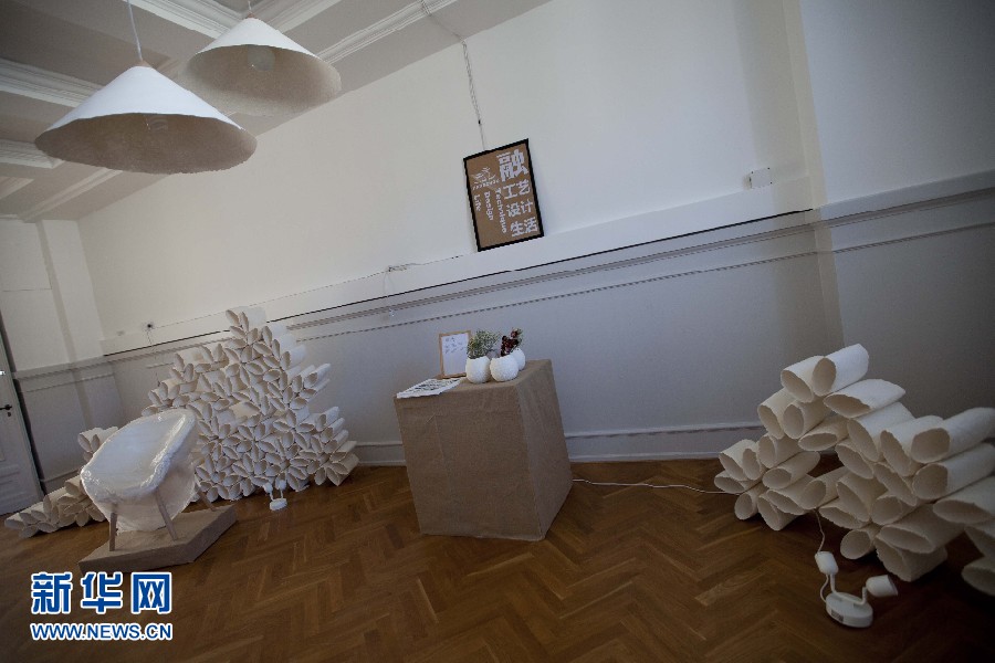 圖為10日所拍攝的“融?工藝設(shè)計生活”為主題的中國當(dāng)代設(shè)計展畫面。