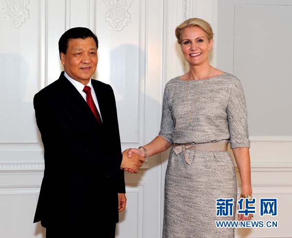 ??? 6月11日,正在丹麥進(jìn)行正式訪問的中共中央政治局常委、中央書記處書記劉云山在哥本哈根會見丹麥?zhǔn)紫嗤袑帲┟芴亍?新華社記者 饒愛民 攝