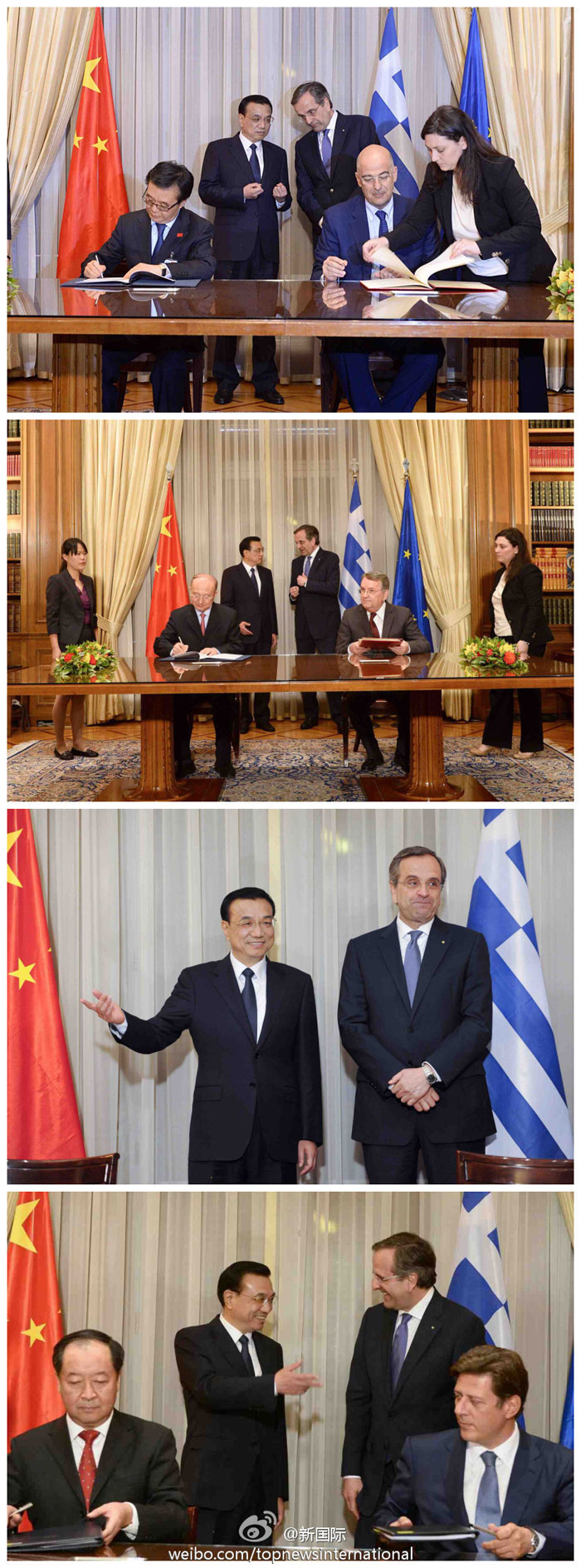 ????新華網(wǎng)北京6月20日電 據(jù)新華社“新國際”微博,報道當(dāng)?shù)貢r間19日下午,國務(wù)院總理李克強與希臘總理薩馬拉斯舉行會談后,兩國總理共同見證了有關(guān)雙邊文化、經(jīng)貿(mào)、投資、海洋、防災(zāi)、基礎(chǔ)設(shè)施建設(shè)等領(lǐng)域合作文件的簽署。
