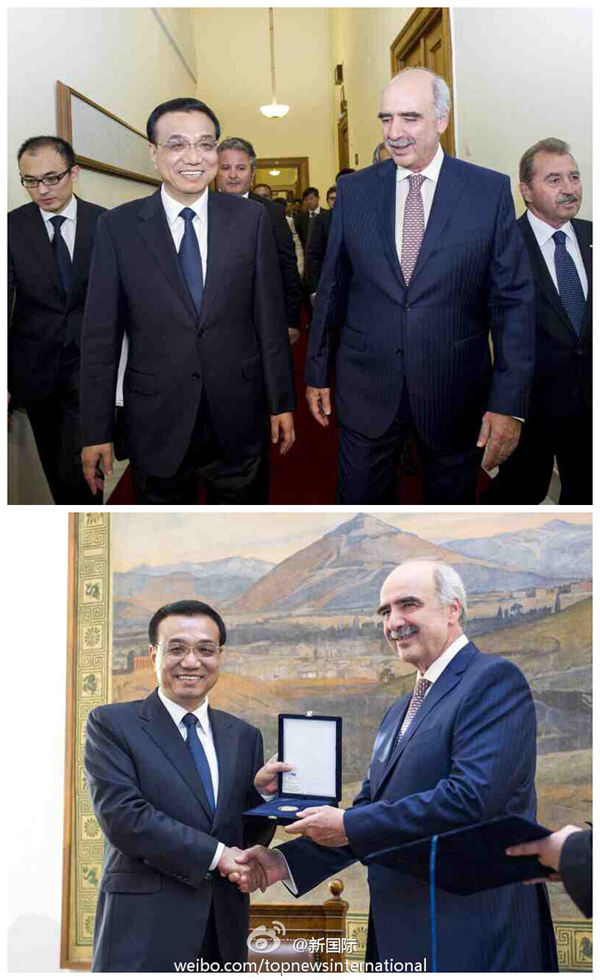 ??? 新華網北京6月20日電 據新華社“新國際”微博報道,19日下午,李克強總理在希臘議會大廈會見希臘議長米馬拉基斯,并被授予希臘議會金質勛章。李克強說,立法機構交流合作是中希全面戰(zhàn)略伙伴關系的重要組成部分。中方愿同希臘議會和政黨加強交流合作,希望希臘議會繼續(xù)為促進中希合作助力添彩。