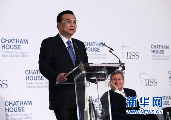 ??? 6月18日,國務院總理李克強在倫敦金融城市長官邸面向英國皇家國際問題研究所和國際戰(zhàn)略研究所兩大智庫發(fā)表題為《共建包容發(fā)展的美好世界》的演講?!⌒氯A社記者 龐興雷 攝