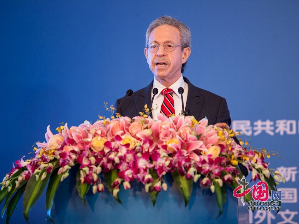 圖為美國庫恩集團(tuán)主席庫恩在“21世紀(jì)海上絲綢之路國際研討會(huì)”高峰論壇發(fā)表演講。中國網(wǎng)記者 鄭亮 攝