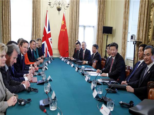 習(xí)近平說(shuō):“中英關(guān)系和中歐關(guān)系發(fā)展面臨繼往開來(lái)的重要機(jī)遇。英國(guó)是歐盟重要成員國(guó),中英關(guān)系同中歐關(guān)系相輔相成?!?/p>
