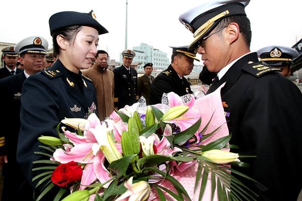 圖為中國(guó)海軍女兵向來(lái)訪的新加坡海軍軍官獻(xiàn)花。2010年3月8日,新加坡海軍登陸艦首訪上海。 當(dāng)日,新加坡海軍“堅(jiān)持”號(hào)登陸艦在艦長(zhǎng)李順達(dá)海軍中校率領(lǐng)下駛抵上海,開(kāi)始對(duì)上海進(jìn)行為期5天的友好訪問(wèn)。這是“堅(jiān)持”號(hào)第一次訪問(wèn)上海。