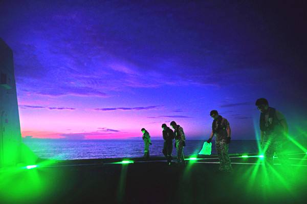 圖為 2015年5月25日,新加坡海軍“剛毅”號(hào)護(hù)衛(wèi)艦士兵進(jìn)行直升機(jī)起降準(zhǔn)備工作。當(dāng)日,中國(guó)海軍“玉林”號(hào)導(dǎo)彈護(hù)衛(wèi)艦與新加坡海軍“剛毅”號(hào)護(hù)衛(wèi)艦、“奮勇”號(hào)導(dǎo)彈巡邏艦在馬來(lái)半島以東海域順利完成了代號(hào)為“中新合作-2015”的海上雙邊軍事演習(xí)。這是中新兩國(guó)首次進(jìn)行的雙邊海上軍事演習(xí)。