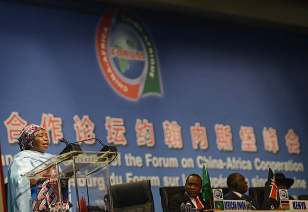 在峰會(huì)開幕式上,南非總統(tǒng)祖馬、穆加貝總統(tǒng)、非盟委員會(huì)主席恩科薩扎娜·德拉米尼-祖馬分別致辭。他們盛贊中非傳統(tǒng)友誼和合作成果,高度評(píng)價(jià)習(xí)近平主席關(guān)于深化中非合作的重要舉措,熱烈歡迎中方宣布的促進(jìn)中非合作措施,支持把中非關(guān)系提升為全面戰(zhàn)略合作伙伴關(guān)系,表示愿同中方攜手并肩,共同開創(chuàng)中非關(guān)系更加光明的未來。