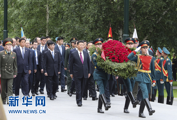 7月4日,國家主席習近平在莫斯科向俄羅斯無名烈士墓敬獻花圈。新華社記者 謝環(huán)馳 攝