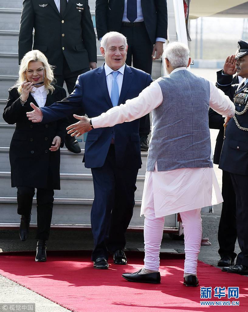 當(dāng)?shù)貢r間1月14日,印度新德里,以色列總理內(nèi)塔尼亞胡抵達印度展開訪問。(圖片來源:視覺中國)
