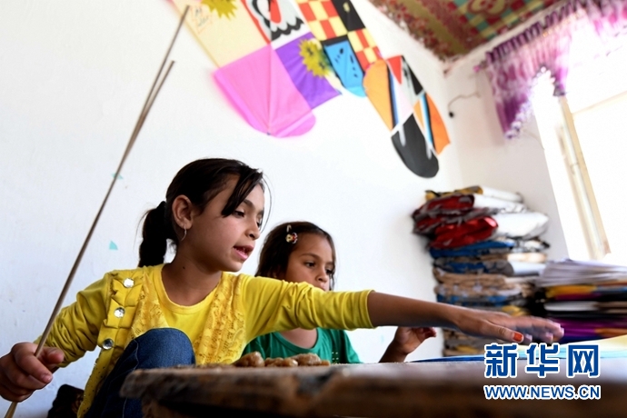 5月29日,在阿富汗首都喀布爾,希杰蘭(左)和妹妹在作坊內(nèi)扎風(fēng)箏。對于阿富汗這個(gè)飽經(jīng)戰(zhàn)火洗禮的國度,風(fēng)箏是人們難得的娛樂品。不少當(dāng)?shù)睾⒆佑H手制作風(fēng)箏貼補(bǔ)家用,可謂窮人的孩子早當(dāng)家。九歲的希杰蘭過去幾年共制作了上萬個(gè)風(fēng)箏。今年“六一”國際兒童節(jié)來臨之際,記者一行來到希杰蘭與家人位于喀布爾郊區(qū)的風(fēng)箏作坊。在略顯簡陋的房間內(nèi),大大小小、五顏六色的紙張隨處可見,不足20平方米的作坊在陽光下如同一個(gè)彩色世界。新華社記者 代賀 攝