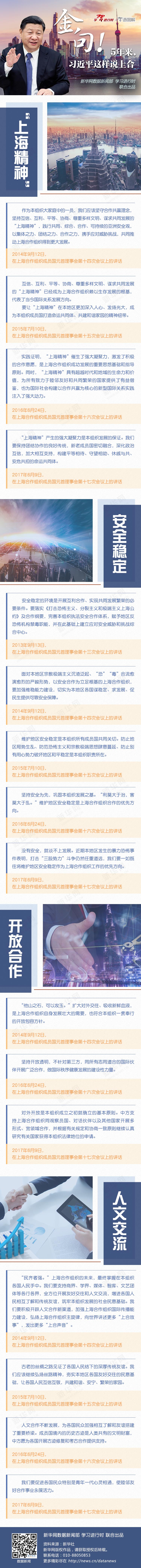 ——從推動(dòng)批準(zhǔn)《上合組織至2025年發(fā)展戰(zhàn)略》《上合組織成員國政府間國際道路運(yùn)輸便利化協(xié)定》到倡議制定《上合組織成員國長期睦鄰友好合作條約》未來5年實(shí)施綱要、商簽《上合組織貿(mào)易便利化協(xié)定》,習(xí)近平主席著眼全局,指引上合發(fā)展方向。