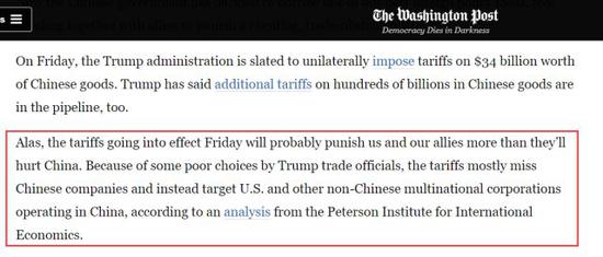 用《華盛頓郵報(bào)》自己的話說(shuō)就是:“因?yàn)樘乩势漳切┵Q(mào)易官員的失策,這些制裁性關(guān)稅并不會(huì)打擊到多少中國(guó)企業(yè),反而把美國(guó)等其他非中國(guó)的跨國(guó)公司的在華分部當(dāng)作了打擊對(duì)象”。