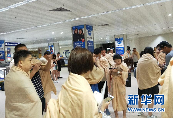 8月17日凌晨,乘坐廈航客機(jī)的乘客在飛機(jī)降落后在菲律賓馬尼拉機(jī)場(chǎng)等候。 新華社發(fā)