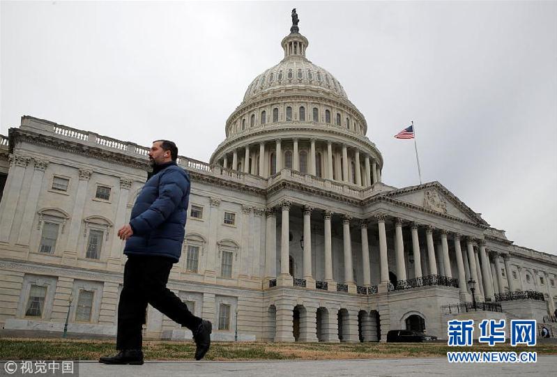 當?shù)貢r間2019年1月7日,美國華盛頓,美國國會。因美國國會兩黨仍無法就臨時撥款法案和美墨邊界墻問題達成一致,截至7日,美國部分聯(lián)邦政府機構(gòu)的停擺狀態(tài)已進入第三周。有白宮高級官員6日透露,由于談判持續(xù)僵持,美國總統(tǒng)特朗普現(xiàn)在已經(jīng)傾向于宣布國家進入緊急狀態(tài)。(圖片來源:視覺中國)