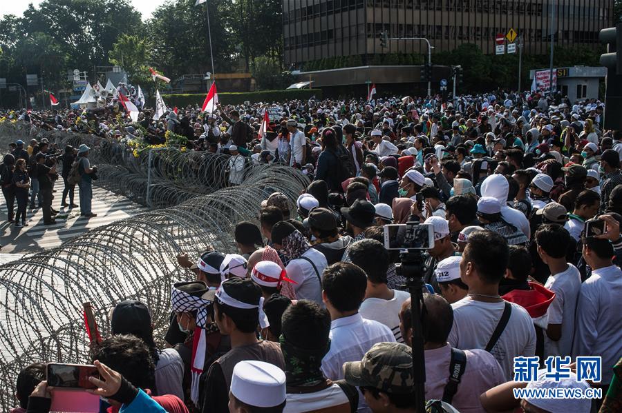 5月22日,在印度尼西亞首都雅加達(dá),示威者聚集在選舉監(jiān)督機構(gòu)外。新華社發(fā)(維里 攝)