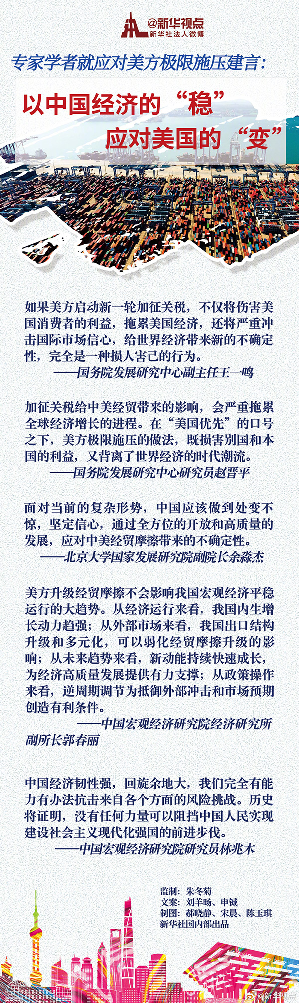 新華社北京8月7日電 題:以中國經(jīng)濟(jì)的“穩(wěn)”應(yīng)對(duì)美國的“變”——專家學(xué)者就應(yīng)對(duì)美方極限施壓建言
