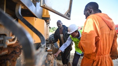 1月20日,在尼日利亞拉各斯,消防人員在輸油管道爆炸現(xiàn)場工作。? 新華社發(fā)(艾瑪·伊曼紐爾攝)