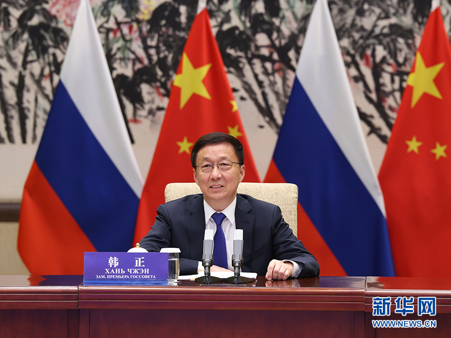 11月24日,中共中央政治局常委、國務(wù)院副總理、中俄能源合作委員會(huì)中方主席韓正在北京與俄羅斯副總理、委員會(huì)俄方主席諾瓦克通過視頻方式共同主持中俄能源合作委員會(huì)第十七次會(huì)議。新華社記者 王曄 攝