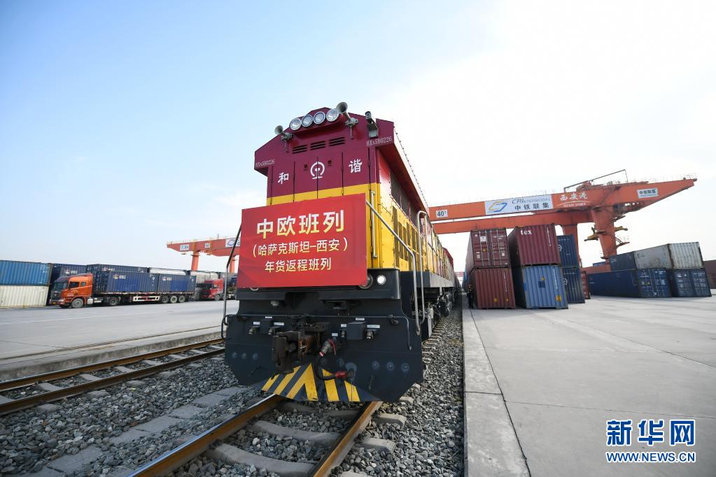 2月3日,滿載年貨的中歐班列抵達(dá)中國鐵路西安局集團(tuán)有限公司新筑車站。新華社記者 李一博 攝