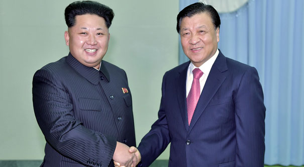 劉云山向金日成主席和金正日總書記塑像敬獻花籃
